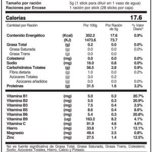 TAURINA + EXTRACTO DE YERBA MATE + ACAI BERRY + CAMU-CAMU + VITAMINA C + VITAMINAS DEL COMPLEJO B + MINERALES (MAGNESIO, HIERRO, ZINC) + DHA + ARA
